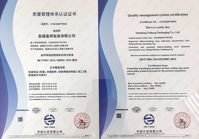 江鹽城富邦包裝有限公司創辦于2011年,地處環(huán)境優(yōu)美的鹽城大豐區三龍鎮工業集中區,緊臨331省道和226省道,交通十分便利。是集研發(fā)、生產、經營為一體的中型私營企業,主要生產各種規(guī)格內、外銷中高檔瓦楞紙箱、彩色印刷、封箱膠帶、紙托盤、珍珠棉、EPS(泡沫)成型、免模、大板裁片的專業工廠,年產瓦楞紙箱達400萬平方米、封箱膠帶260萬平方米、EPS泡沫10萬立方米以上。工廠占地8000平方米,生產廠房近3000平方米,擁有進口1020秋山四色膠印機,生產工藝先進,檢測手段齊全,品質服務保證,本公司已通過ISO9001:2015國際質量體系認證,并嚴格持續(xù)遵照體系認證及商檢部門要求組織生產和經驗管理。。。。。。 |